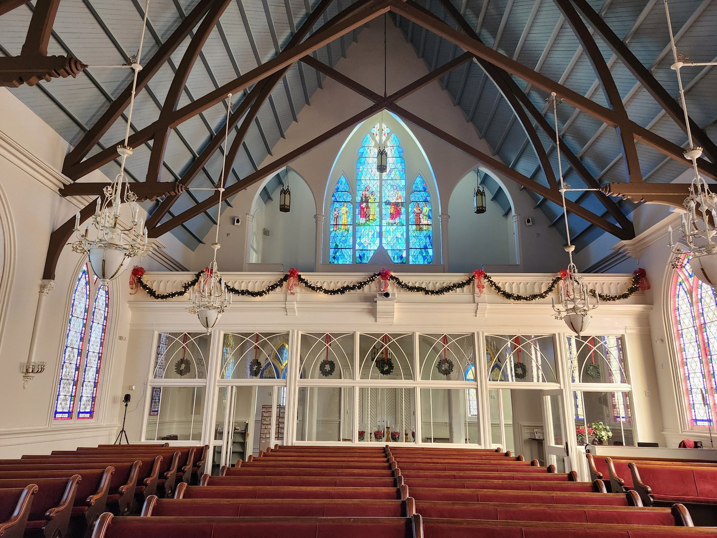 Yet again, the Sanctuary sustained damage in the storm of February 4, 2024. The roof, literally, blew off with the high winds, and the rain cause extensive damage to the interior walls. Repairs are now complete, and we celebrated our first Sunday back in the Sanctuary on August 11, 2024. God is good!